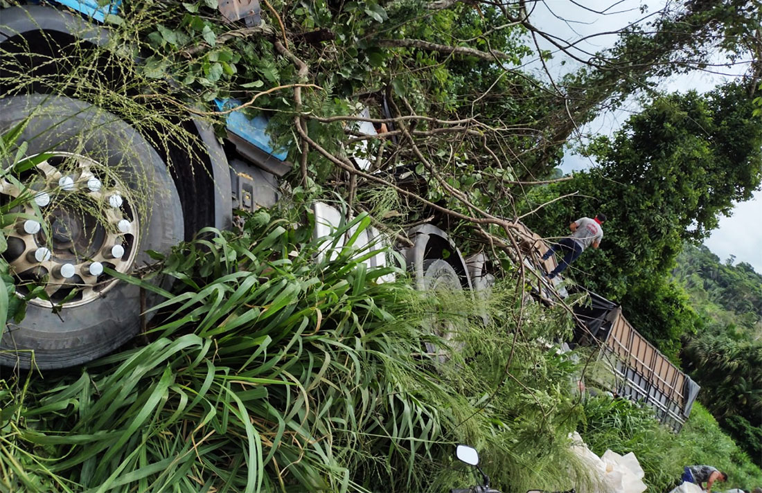 Um dos diretores da empresa informou, ao Só Notícias, que seu motorista detalhou que ocorreu uma invasão de pista da Daf e para evitar a colisão tirou a carreta para fora da rodovia e acabou tombando na lateral, numa região de curva.