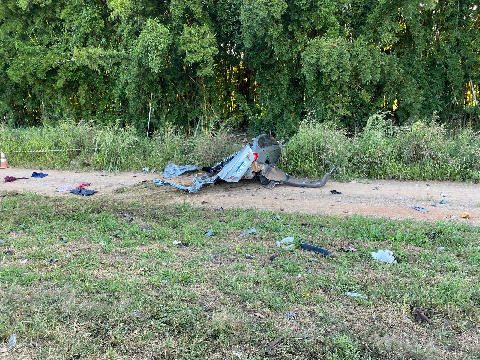 A perícia revelou que, em determinado momento, em razão de sua imprudência na condução do veículo citado, o motorista do caminhão saiu da pista para o acostamento, percorrendo uma distância de 16,4 metros em sentido retilíneo. Ao retornar para sua faixa, perdeu o controle da direção de seu caminhão e percorreu toda a via no sentido “Cuiabá – Nova Mutum” em trajetória oblíqua até invadir a pista contrária (de quem transitava no sentido “Nova Mutum – Cuiabá”). Na sequência, o veículo do denunciado colidiu frontalmente contra o automóvel em que estavam as vítimas – que regularmente trafegavam pela faixa “Nova Mutum – Cuiabá”.