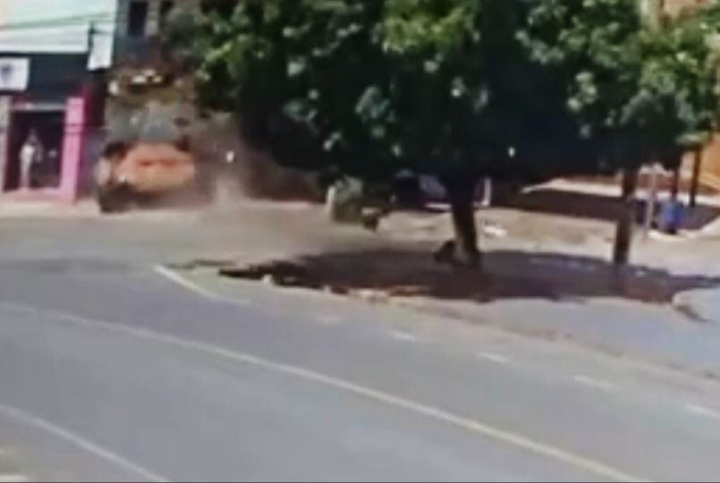Embaixo da árvore, havia uma motocicleta que também foi atingida pelo veículo e arremessada contra o muro. A colisão foi registrada por câmeras de segurança que flagraram o gravíssimo impacto do Uno contra a parede.