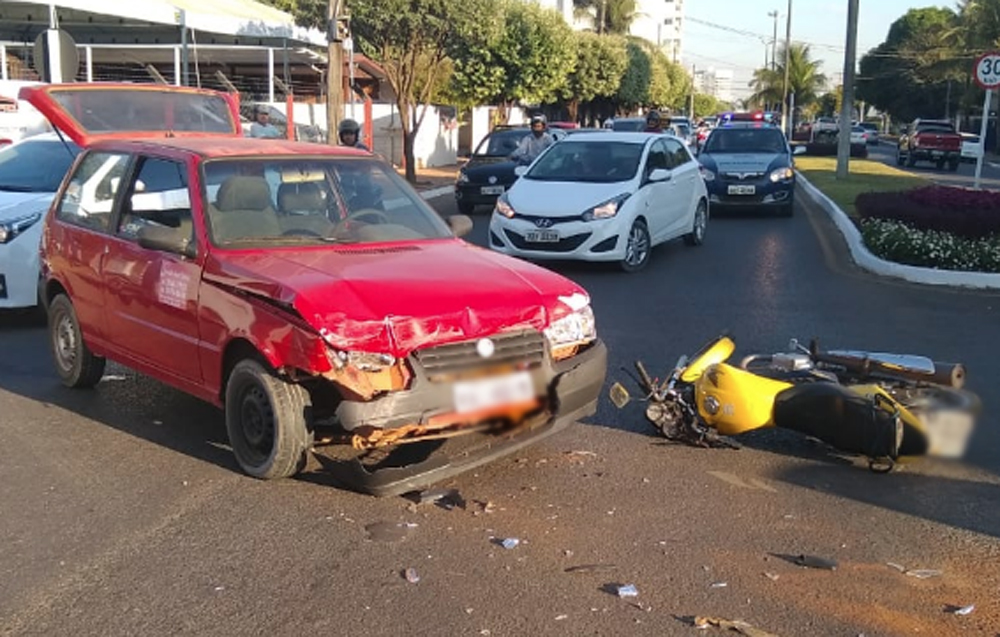 Com o impacto, o Astra rodou na pista e parou no sentido contrário. Já o Uno e a moto ficaram com as frentes danificadas. O caso está sendo investigado.