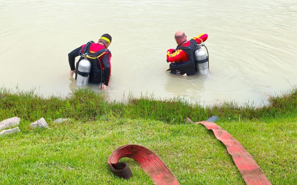 O proprietário do VW Gol vermelho alegou que estaria tentando estacionar na localidade quando perdeu o controle direcional. Na sequência, o veículo desceu por uma ribanceira e acabou adentrando o lago.