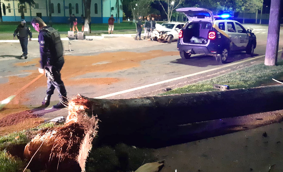 Informações repassadas pela Guarda Civil, o condutor do veículo, contornava a rotatória, quando perdeu o controle da direção e colidiu frontalmente com uma palmeira.