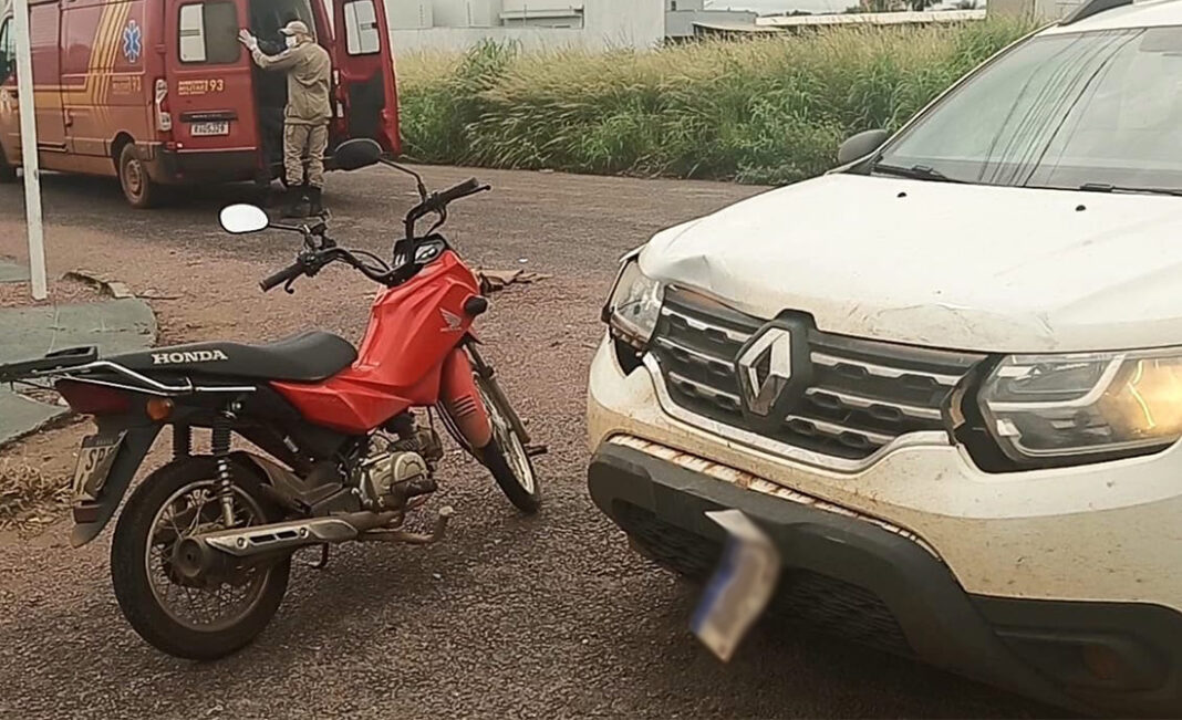 O acidente envolvendo a Honda Pop vermelha e o Renault Duster branco foi, esta manhã, no cruzamento das ruas Milena e Parma, no bairro Jardim Florença. A motociclista foi socorrida pelo Corpo de Bombeiros e encaminhada até a Unidade de Pronto Atendimento.