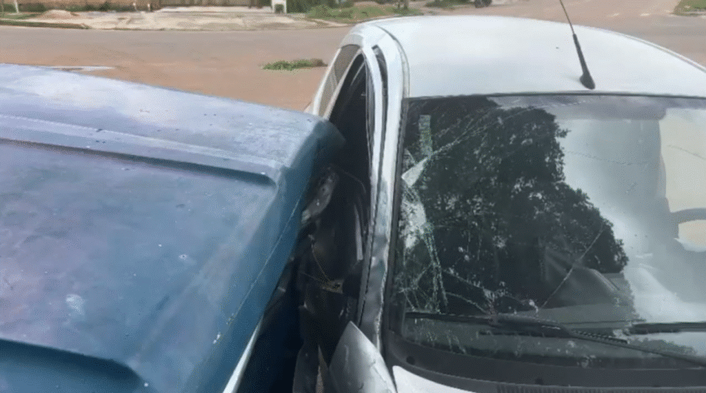 O caminhão-baú azul e o veículo Ford Ka colidiram, hoje, no cruzamento da avenida Ouro Preto e rua Valentin Dalastra, no bairro Setor Industrial. O Corpo de Bombeiros socorreu uma mulher envolvida no acidente, com ferimentos na cabeça.