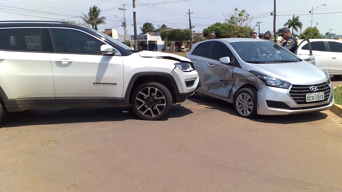 Uma mulher, de 35 anos, que conduzia um Hyundai HB 20 prata, ficou ferida após se envolver numa colisão com um Jeep Compass branco, conduzido por outra mulher, de 49 anos, no cruzamento das avenidas dos Tarumãs com André Maggi, no Jardim Maringá, ontem.