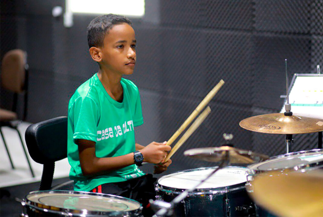 Serão entregues baterias acústicas, kit de baterias eletrônicas, conjunto com bumbos de marcha, pares de baquetas, encordoamento para violões, escaleta piânica com 37 teclas, teclado de 61 teclas flautas doce germânica e soprano, fones de ouvido profissionais, set de pratos para bateria e mais.