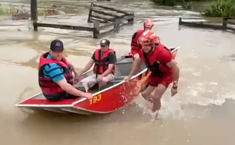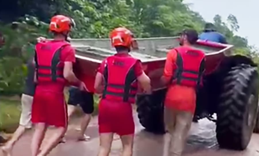 Com apoio da Defesa Civil, os militares “precisaram percorrer cerca de três quilômetros em meio às áreas inundadas. Durante o trajeto, a embarcação utilizada no resgate foi transportada por trechos de terra firme, de forma manual e mais próximo do sítio, contando com o auxílio de um trator que operava nas proximidades”, segundo o boletim de ocorrência.