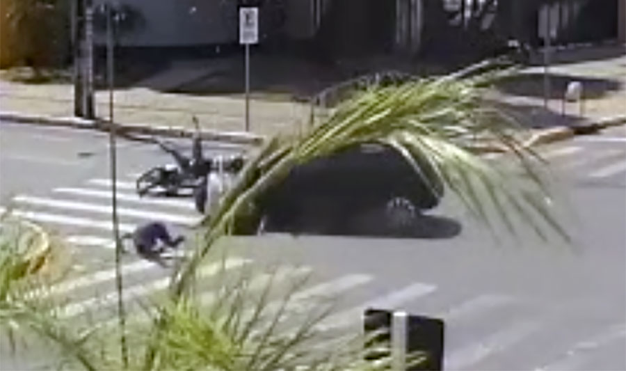 Imagens de câmeras de segurança flagraram o acidente. A motociclista trafegava pela rua das Castanheiras, quando o motorista do carro vinha na rua das Orquídeas e houve a colisão. Com o impacto, condutora e passageira foram arremessadas para o meio fio.