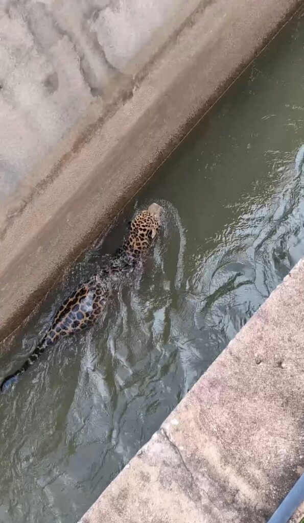 Onça é resgatada debilitada em canal de usina em Mato Grosso e devolvida à natureza