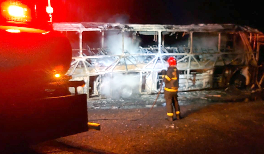 O incêndio em um ônibus foi registrado ontem à noite, por volta das 22 horas, na MT-130, entre Primavera do Leste e Rondonópolis (243 e 218 quilômetros de Cuiabá). Os 40 passageiros que estavam a bordo saíram ilesos.