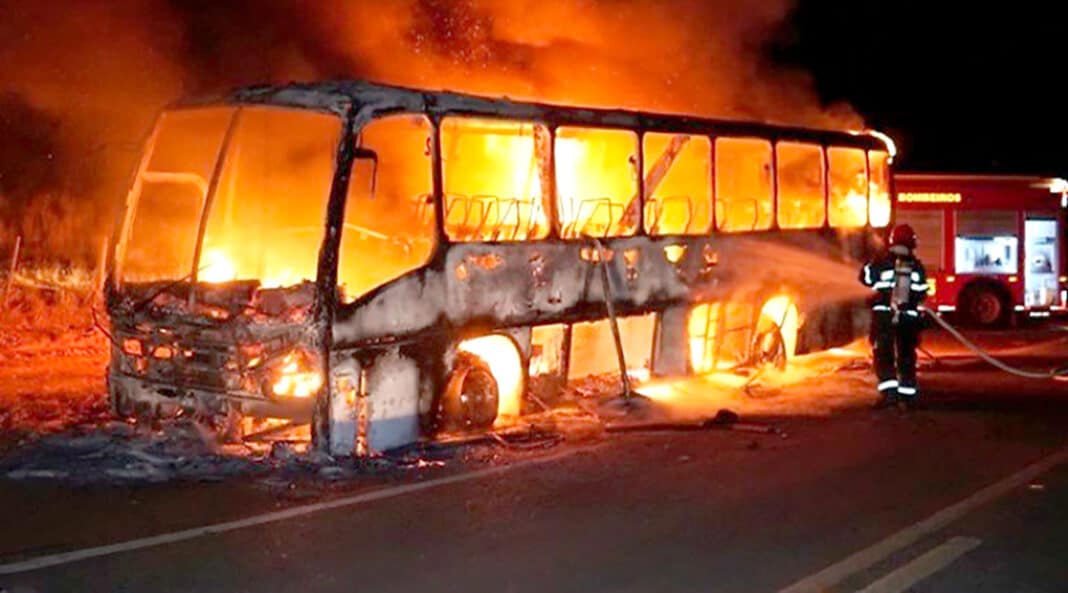 O ônibus intermunicipal, de marca e modelo não identificados, foi destruído pelas chamas ontem à noite, na rodovia MT-270 em Rondonópolis (214 quilômetros ao sul de Cuiabá). O Corpo de Bombeiros confirmou que não houve feridos.