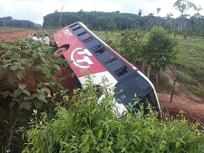 Ônibus tomba na MT-183 em Aripuanã – janeiro 2015 (Top News)