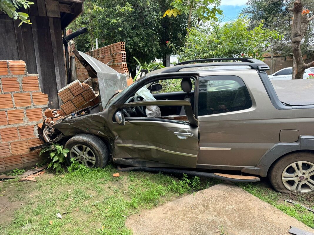 Após a batida, a picape subiu a calçada e derrubou parcialmente o muro, quase atingindo uma casa de madeira. Os dois veículos ficaram com a parte frontal totalmente destruída. O airbags de ambos os carros foram acionados.