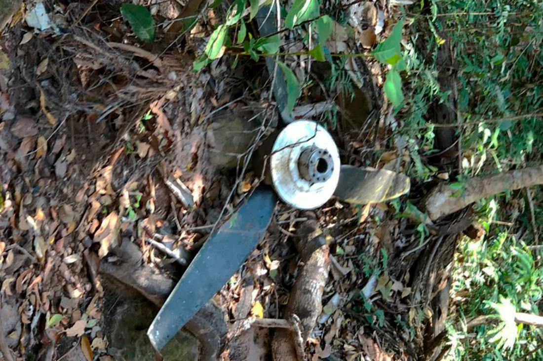 O avião foi destruído pelo fogo. Ainda não há informações do prefixo e quando teria ocorrido o acidente. Uma suposta arcada dentária foi encontrada entre os destroços e será enviada para análise pericial.