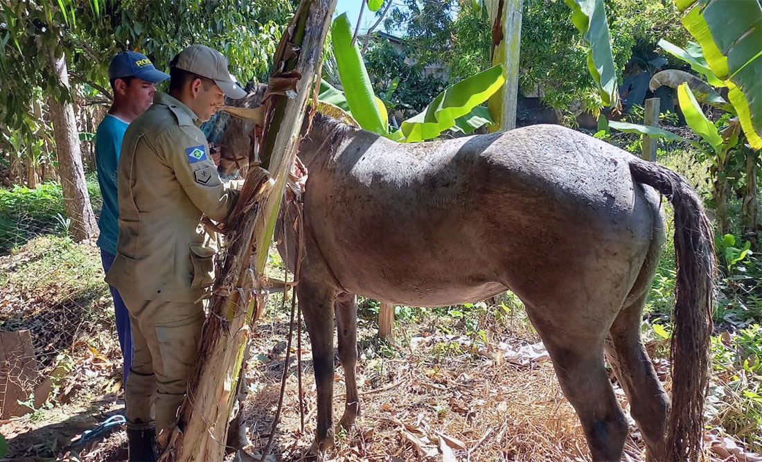 De acordo com o registro da ocorrência, os militares colocaram uma corda e foi feita amarração para que o cavalo não se assustasse. Tábuas também foram colocadas ao lado para apoio.