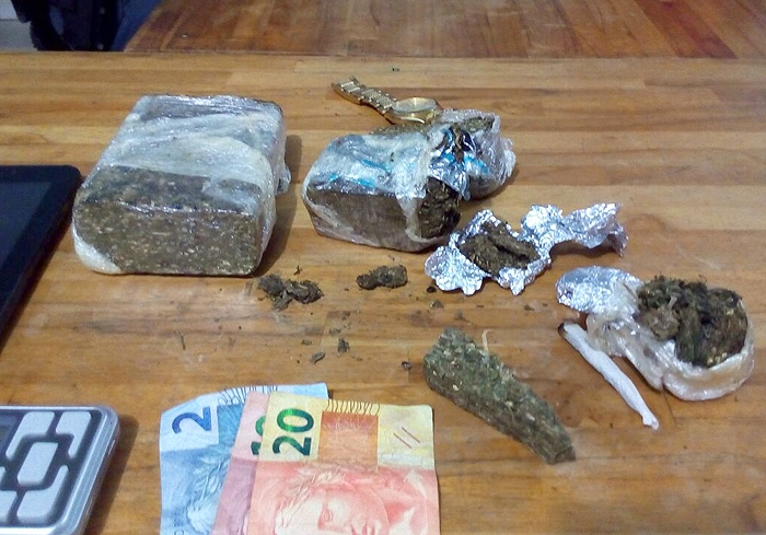 Porção de drogas encontrada com Homem acusado de envolvimento com tráfico em Alta Floresta – dezembro 2016 (Nativa News/ Eliza Gund)