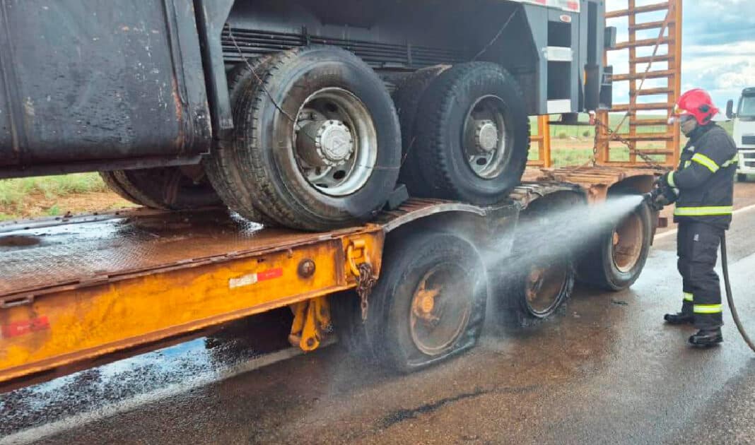 As chamas danificaram o semirreboque de um VW Constellation 25.420, ontem à tarde, na rodovia BR-070 em Campo Verde (139 km de Cuiabá). Não houve feridos, segundo o Corpo de Bombeiros. O motorista alegou que os focos de incêndio surgiram nos eixos traseiros, após “após um dos pneus estourar e do aquecimento das pastilhas de freio”.