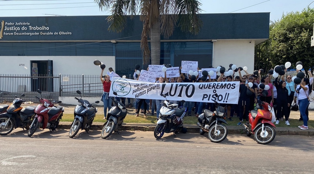 A classe de enfermagem em Sinop está fazendo manifestações após a justiça suspender os efeitos da lei do piso salarial da enfermagem. Esta manhã, profissionais protestaram em frente ao fórum da Justiça do Trabalho, no centro da cidade. Um dos integrantes da categoria, Alaf Diego de Camargo, informou que na sexta-feira o grupo irá até o ministério Público do Trabalho na tentativa de protocolar uma ação coletiva e para exigir uma reação sobre o piso salarial. Amanhã, o grupo estará com carro de som percorrendo alguns pontos da cidade. Eles aguardam respostas até a próxima semana e caso não sejam ouvidos farão paralisação.