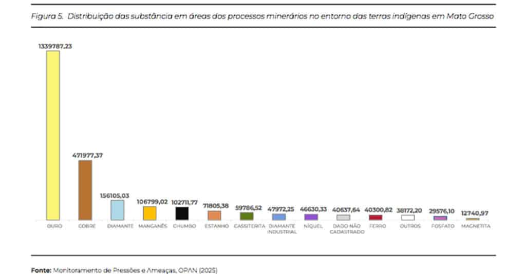 A Operação Amazônia Nativa (OPAN), organização sem fins lucrativos, apurou que o território mato-grossense passou por crescimento expressivo e contínuo de processos minerários nos últimos 8 anos, com destaque para o entorno de Terras Indígenas (Tis), representando um aumento acumulado de 130% em títulos ativos como autorizações de pesquisa, requerimentos de lavra garimpeira, requerimentos de pesquisa, licenciamento, entre outros registros. Em 2018, eram 5,9 mil operações de mineração em andamento, seguindo uma trajetória ascendente que culminou em 13,6 mil em 2025. Os dados foram detalhados no Boletim de Ameaças e Pressões às Terras Indígenas em Mato Grosso, com o apoio da Agência Nacional de Mineração (ANM) e da Fundação Nacional dos Povos Indígenas (Funai).