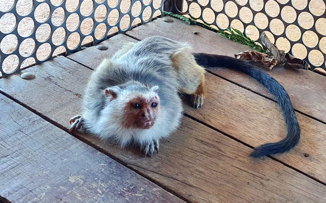 O sagui-de-schneideri foi entregue por um morador, no quartel do Corpo de Bombeiros de Alta Floresta, após ser encontrado no estacionamento de um supermercado, no bairro Setor D.