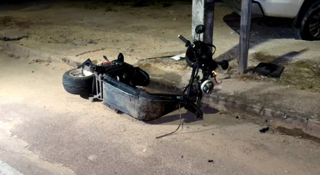A caminhonete, de cor branca, e a scooter elétrica colidiram, ontem à noite, na rua dos Mognos com rua Otávio Pereira Lima, no bairro Residencial Vitória Régia. O Corpo de Bombeiros foi acionado e encaminhou dois adolescentes que estavam na scooter a uma unidade de saúde para avaliação médica.