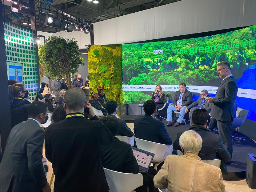 Durante o debate no Painel “Amazônia Real”, a secretária de Estado de Meio Ambiente e presidente da Associação Brasileira de Entidades de Meio Ambiente, Mauren Lazzaretti, apresentou os avanços e desafios da política ambiental de Mato Grosso. O Painel, esta manhã, no quinto dia da Conferência das Nações Unidas sobre Mudanças Climáticas (COP-26), como parte da programação do Pavilhão Brasil, em Glasgow, na Escócia.