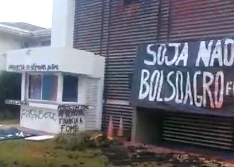 Há pichações em todo o prédio, nas partes externa e interna, com frases como “Fora Bolsonaro”, “agro é morte” e “soja não enche o prato”. Foram jogadas ainda bolas de tinta na fachada do prédio – que foi invadido pelos manifestantes – e diversas faixas foram penduradas. Todo o movimento foi registrado e divulgado nas redes sociais.