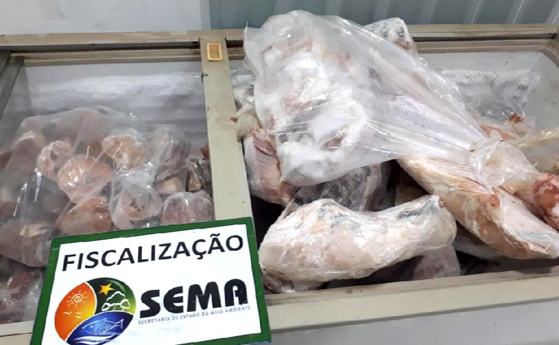 Os peixes são das espécies de Jau e Caparari, foram encontrados sem documentação de origem e descaracterizados, alguns sem cabeça e outros cortados em postas de filé. Além do pescado, três freezers foram apreendidos.
