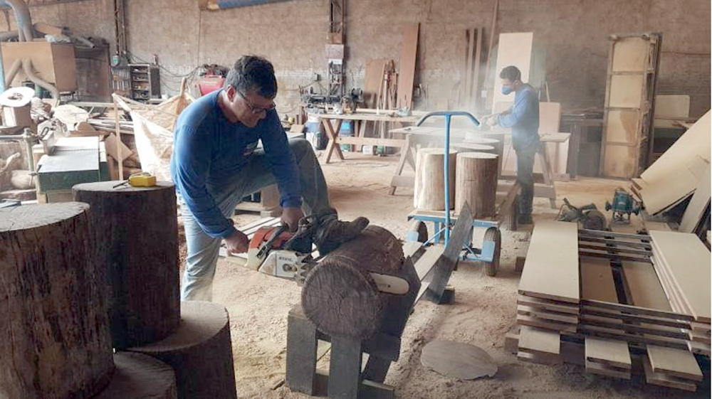 O empresário e associado ao Sindusmad, Roque Keppel, fez a doação das toras para colaboração do projeto. Já o empresário e Diretor Juarez Ramos fez todo o trabalho de beneficiamento dessa madeira, transformando em 22 banquetas que irá contemplar o espaço das artes.