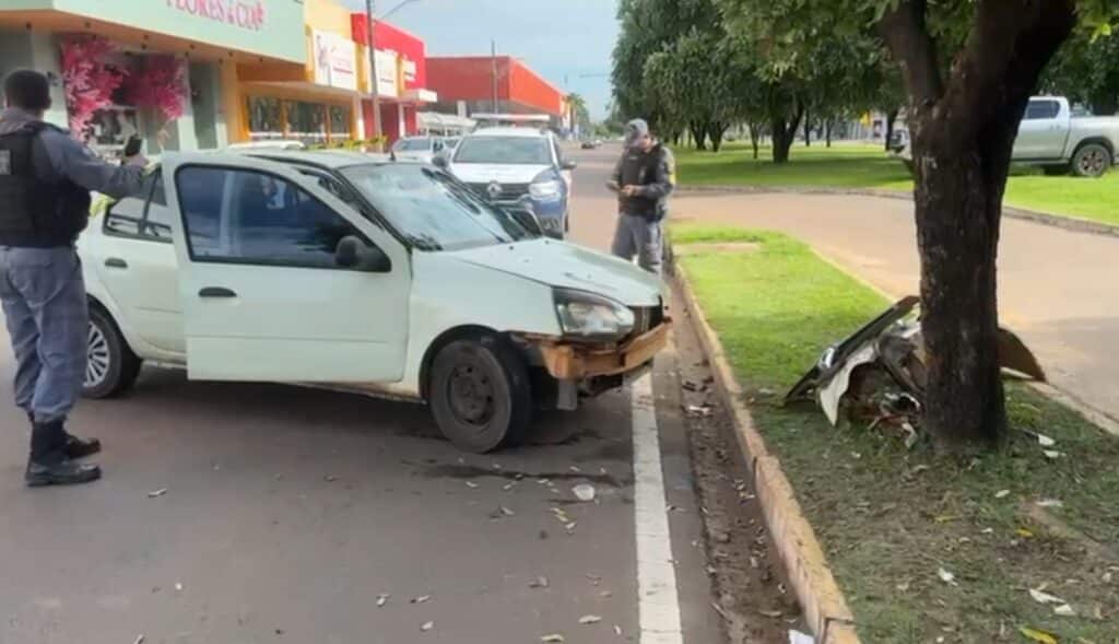 Sinop: carro bate em árvore em avenida e condutor fica ferido