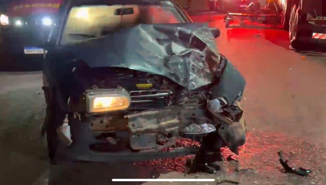 A colisão entre os veículos foi frontal. Após a constatação de embriaguez, o condutor do carro foi encaminhado à delegacia de Polícia Civil.