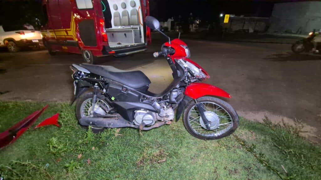 A motoneta Honda Biz e o veículo (marca e modelo não identificados) colidiram, ontem à noite, no cruzamento da avenida dos Ipês com rua dos Monjoleiros, no bairro Jardim Imperial. O Corpo de Bombeiros encaminhou a motociclista em estado grave ao hospital regional.