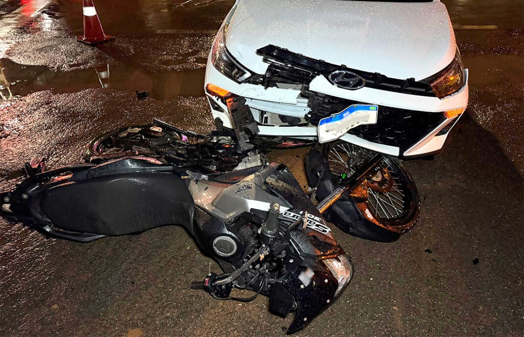 Com o impacto, parte da moto chegou a ficar sob o automóvel, além de ter as lanternas, painel e guidão danificados. Já o automóvel ficou com o para-choque e capô avariados. Terceiros prestaram auxílio ao ferido e comunicaram os serviços de resgate.
