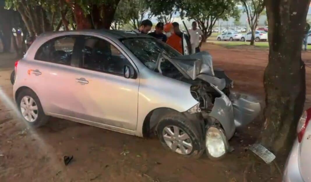 O veículo Nissan, de cor prata, colidiu em uma árvore, hoje, no final da tarde, na avenida Alexandre Ferronato, no bairro Setor Industrial. A condutora ficou levemente ferida e foi socorrida pelos bombeiros.