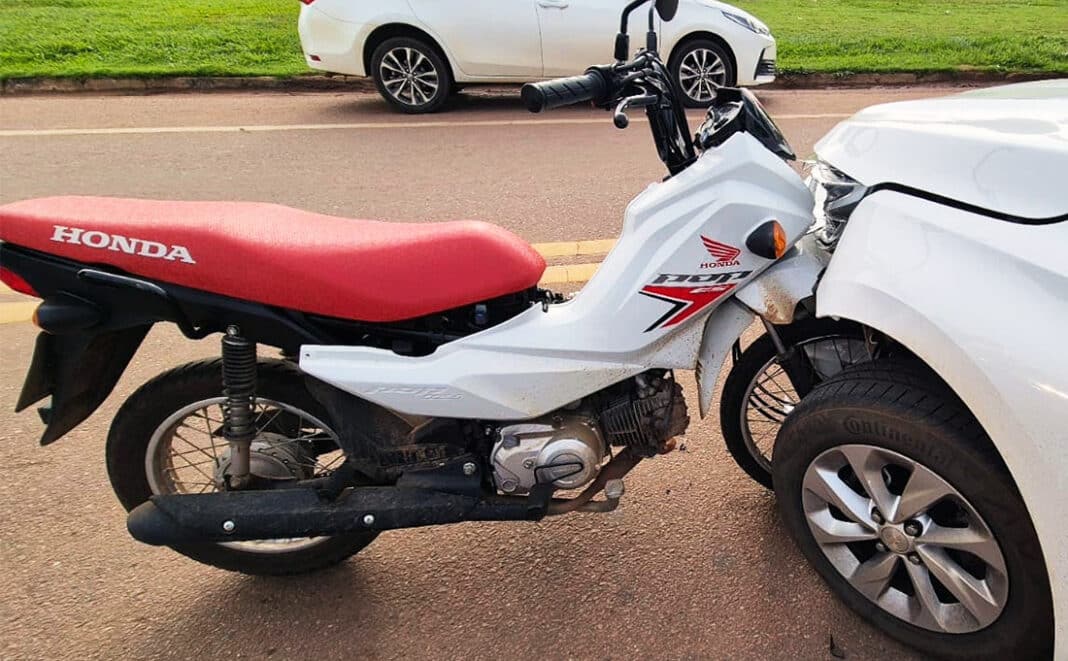 Segundo apurado, a motociclista seguia em direção à região central, quando o condutor do veículo saía do estacionamento de um comércio da região e adentrou na pista, ocasionando o choque. A motoneta acabou ficando “presa” entre o pneu dianteiro esquerdo e a parte frontal do carro.