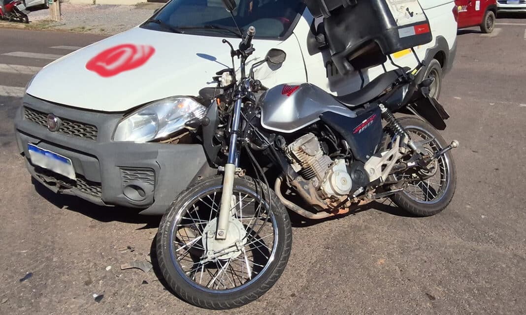 O acidente envolvendo a Fiat Strada branca e a Honda Start prata foi, esta manhã, no cruzamento entre a avenida das Itaúbas e a rua das Perobas, no bairro Jardim das Palmeiras. O motociclista foi socorrido pelo Corpo de Bombeiros e encaminhado ao hospital regional com suspeita de fratura em uma das pernas.