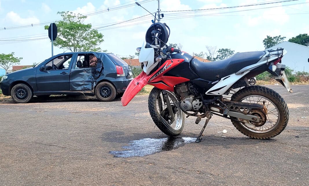 O acidente envolvendo um Fiat Pálio cinza e Honda Bros vermelha ocorreu, há pouco, no cruzamento entre a rua Rolândia e avenida Central, no loteamento Umuarama 2. O motociclista recebeu os atendimentos inicias pelo Corpo de Bombeiros.