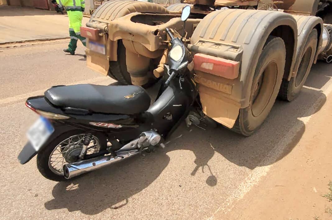 Com o impacto, a moto parou com o pneu dianteiro embaixo do caminhão e teve a carenagem e farol danificados. O condutor do cavalo mecânico permaneceu no local.