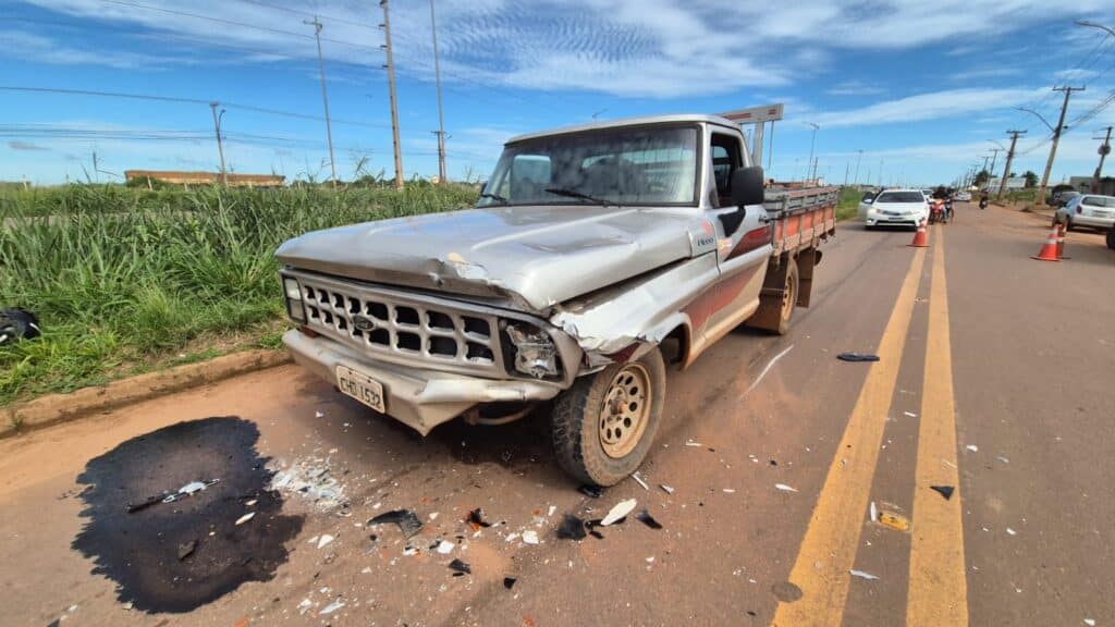 A caminhonete Ford F-1000 e a motocicleta Honda Twister, colidiram frontalmente, há pouco, na rua João Pedro Moreira de Carvalho, próximo à região de Chácaras. Socorristas da concessionária da rodovia conduziram a motociclista com suspeita de fratura nos dois braços a uma unidade de saúde.