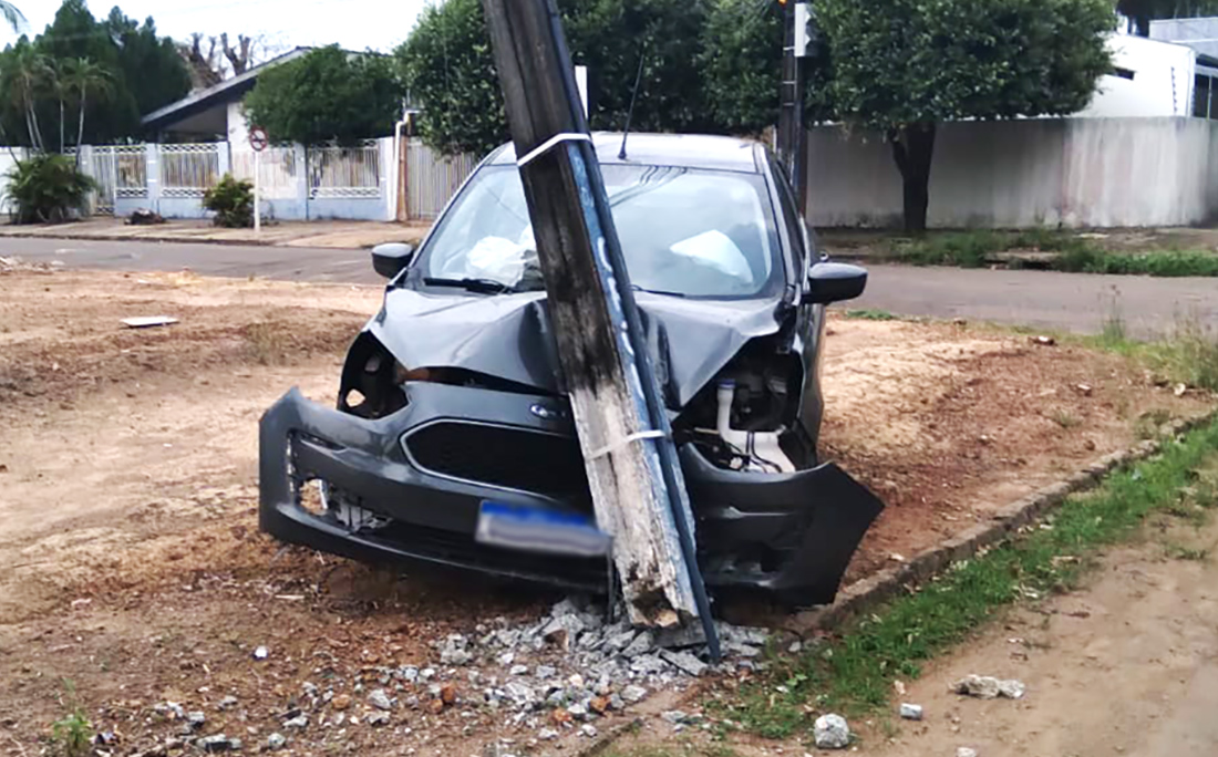 Um Ford Ka colidiu em um poste de concreto da rede elétrica, hoje, na rua das Orquídeas, no bairro Jardim das Primaveras. Não há informação se houve feridos. De acordo com informações de moradores, a colisão possivelmente foi de madrugada. O condutor do automóvel não se encontrava no local.