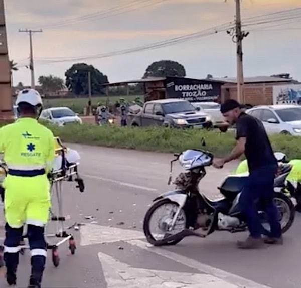 O acidente foi no final da tarde, no perímetro urbano da rodovia federal, na rotatória de acesso a estrada vicinal Monalisa envolvendo uma moto Biz cinza e uma caminhonete S-10 branca. A mulher que estava na moto foi socorrida, pela equipe da concessionária, com suspeita de fraturas nos dois braços e levada ao hospital para exames.