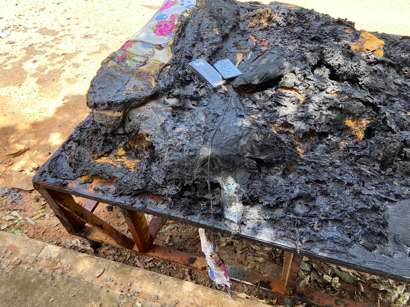 A versão apontada preliminarmente é que o fogo se iniciou com um celular que estava carregando sobre a cama. O aparelho acabou esquentando e provocou as chamas, que ainda atingiram um estofado.