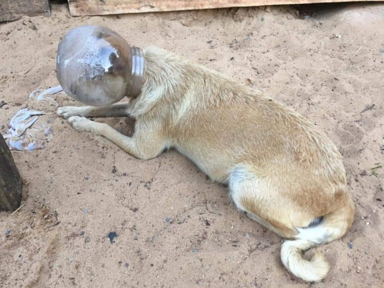 Sorriso: cadela é encontrada com recipiente preso à cabeça e associação apura ato criminoso