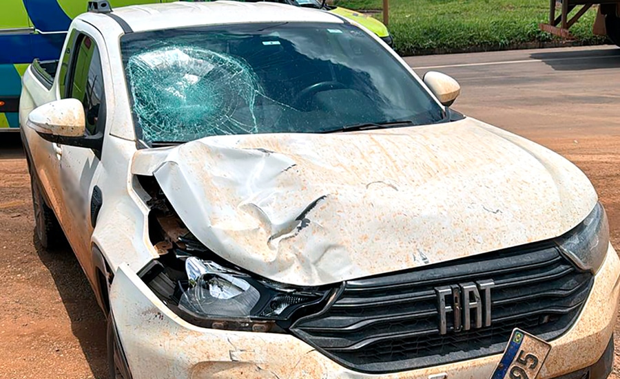 Com o impacto, a picape teve o farol direito e para-brisa quebrados e o capô amassado. Já a moto teve a carenagem lateral arrancada e o tanque amassado.