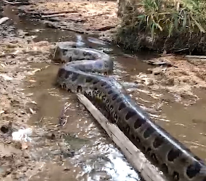 Em seguida, os policiais levaram a sucuri para uma área de mata (afastada da cidade) com pequeno córrego, onde foi solta.