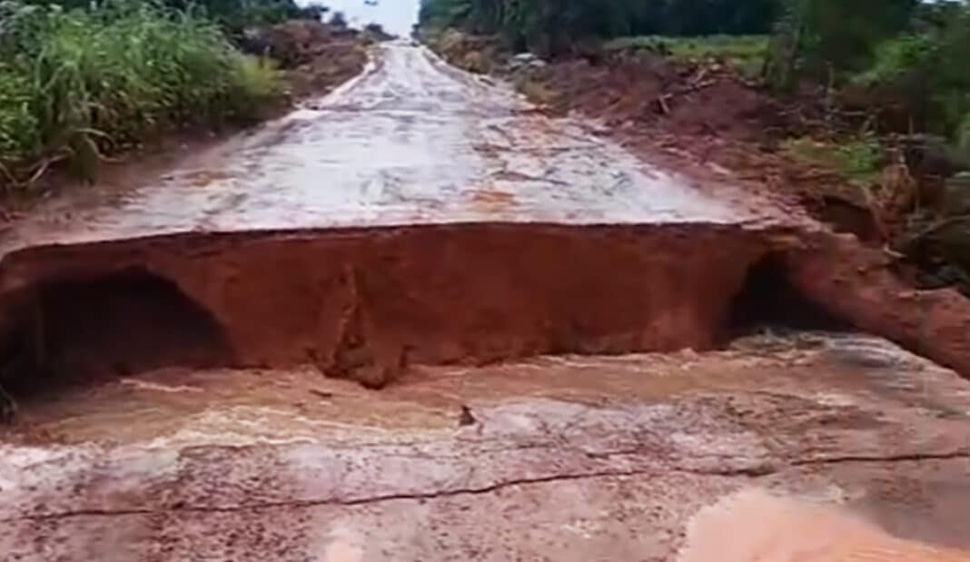 Um trecho da MT-423, que liga Marcelândia (164 quilômetros de Sinop) ao distrito de Analândia do Norte, está interditado para passagem de veículos. Com o volume de chuva registrado nas últimas horas, a enxurrada acabou levando um bueiro e abrindo uma cratera na rodovia, que não é pavimentada.