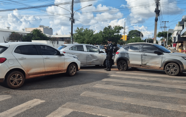 A colisão foi, há pouco, na avenida das Sibipirunas, esquina com Aroeiras, próximo à paróquia Santo Antônio, envolvendo um Fiat Argo branco, um GM Ônix prata e um Fiat Pulse. Um veículo ficou com a lateral direita amassada e pneu traseiro furado. O Argo teve danos na parte frontal e o Ônix, na lateral.