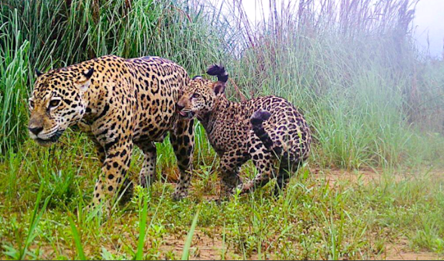 UHE Sinop faz registro raro de onça pintada e filhote no entorno do reservatório