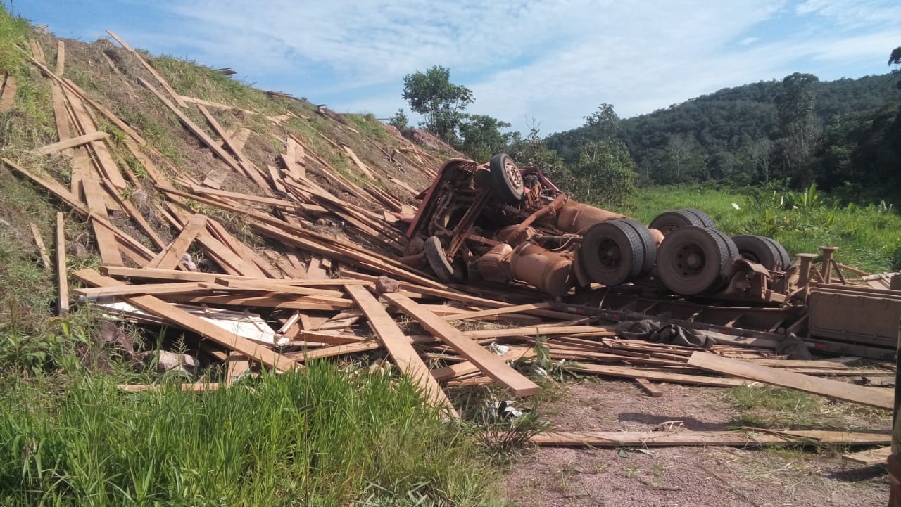 Um morre e outro fica ferido após carreta carregada com madeira tombar em serra no Nortão