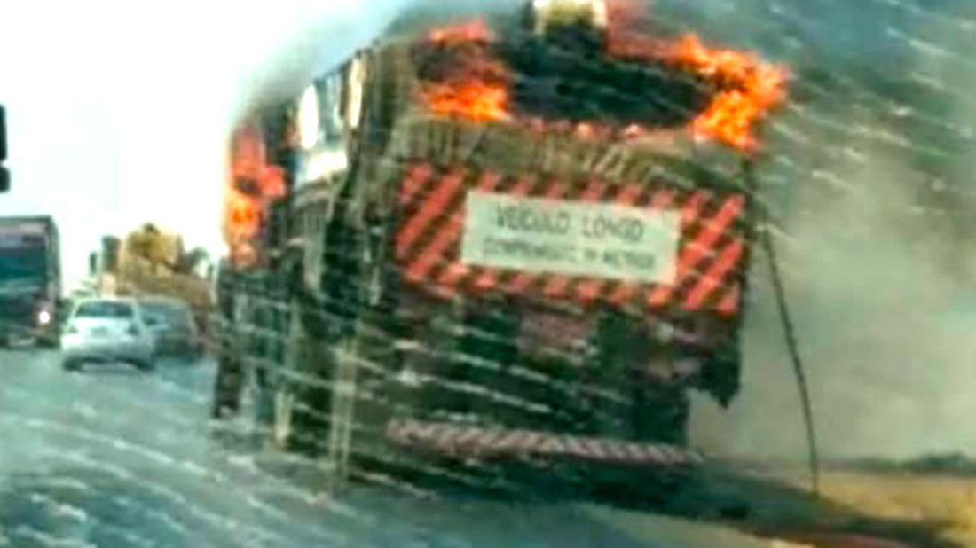 O Corpo de Bombeiros está tentando acabar com as chamas em um vagão de uma Iveco Strallis 410 branca, com placa de Três de Maio (RS), que pegou fogo, há pouco, na BR-163, entre Lucas e Mutum. Equipes da concessionária que administra a rodovia também estão no local sinalizando e dando apoio aos militares.